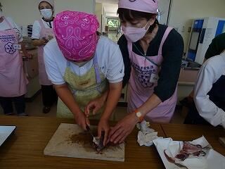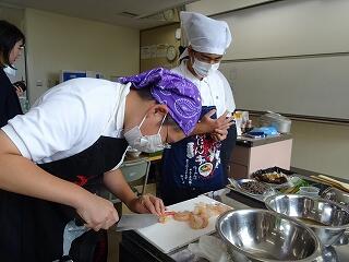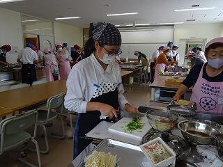 もぶりめし、アジフライ、みそ汁、きゅうりのきゅうちゃん漬を食生活改善推進員の皆さんと一緒に作りました。