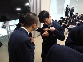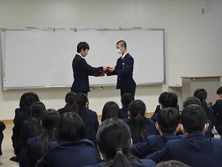 旧生徒会から引き継ぎを行い、認証式が16日(木)に行われました。