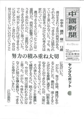 中国新聞 令和5年4月19日掲載 投稿: 編集長 (2023/08/17) 中国新聞社の許諾を得ています この記事を見て、5月2日の広場に投稿してくださった方がおられました。 生徒の励みになりました。ありがとうございます。 -