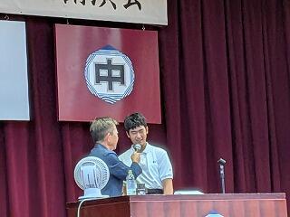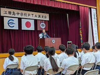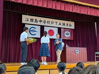 9月27日(土)の午後からPTA教育講演会が開催されました。講師は、フリーアナウンサーの本名正憲さんで、演題は、「江田島家族のみなさんへ ~ラジオマンからのメッセージ~」でした。講演では、ラジオ放送の利点(声の持つ力)、コミュニケーションの大切さ(顔と顔を合わせて会話、相手の反応を受け取って会話)など、現代社会でおろそかになりがちなことについてご示唆をいただきました。今回は誠にありがとうございました。