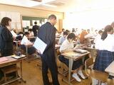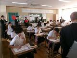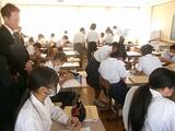江田島市教育委員会の教育長ミーティングが行われ、本校に県教育委員会、市教育委員会の皆様方が10名ご来校くださいました。はじめに全学級の授業を参観され、その後の協議では、今後の授業の在り方や生徒の頑張りについて具体的に評価をいただきました。