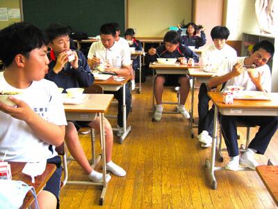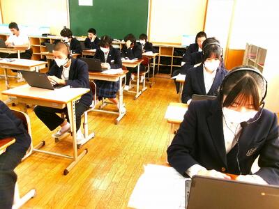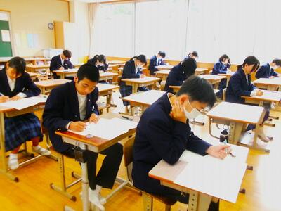 本日、3年生は国語・数学の全国学力・学習状況調査を終えました。昨日は英語の調査を行い、chromebook、ヘッドセットを利用して取り組みました。問題に取り組む熱いまなざしが印象的でした。午前の学力調査の後は、おいしい給食を食べました。疲れ切った脳も元気を取り戻していたように思います。