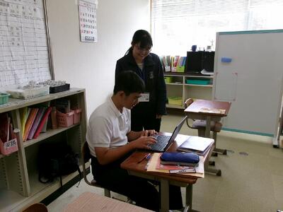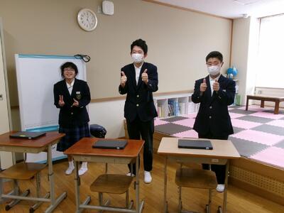タブレットドリルは自分のペースで学習できます。分からないときは、先生が解き方を丁寧に教えてくれます。しっかり集中し、学ぶことができましたね!