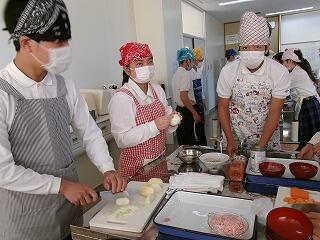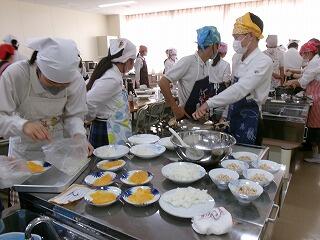 江田島市の食生活改善推進員の方々を講師に迎え、カレー、和え物、ゼリーを作りました。